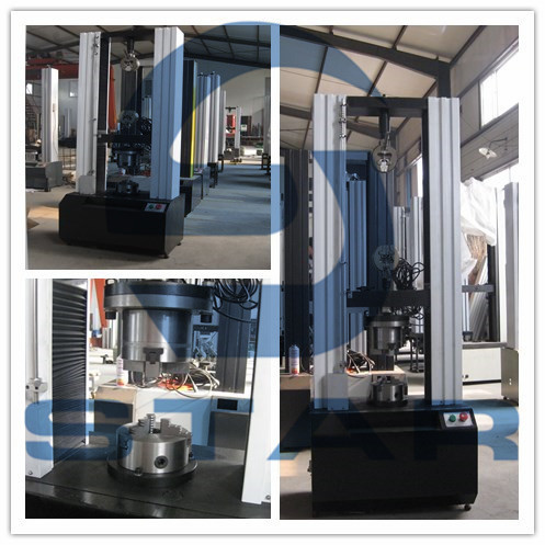 雙臂門式子彈拉拔試驗機現場圖,濟南思達特殊設計子彈拉拔專用試驗附具,滿足子彈拉拔試驗需求。